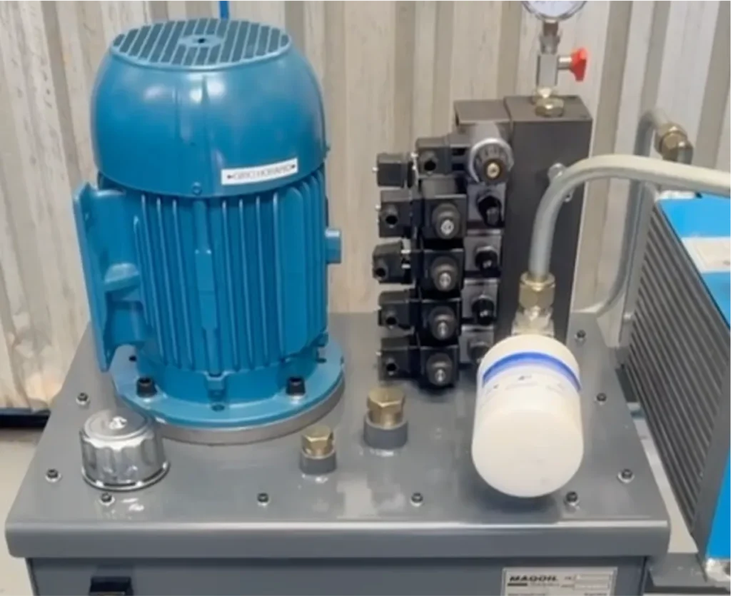 Con cuatro cilindros equipados con adaptadores de rótulas, diseñada específicamente para el accionamiento de mesa de tolva. Este desarrollo permite un movimiento preciso y controlado, cumpliendo con los requisitos operativos del cliente y garantizando un desempeño confiable.